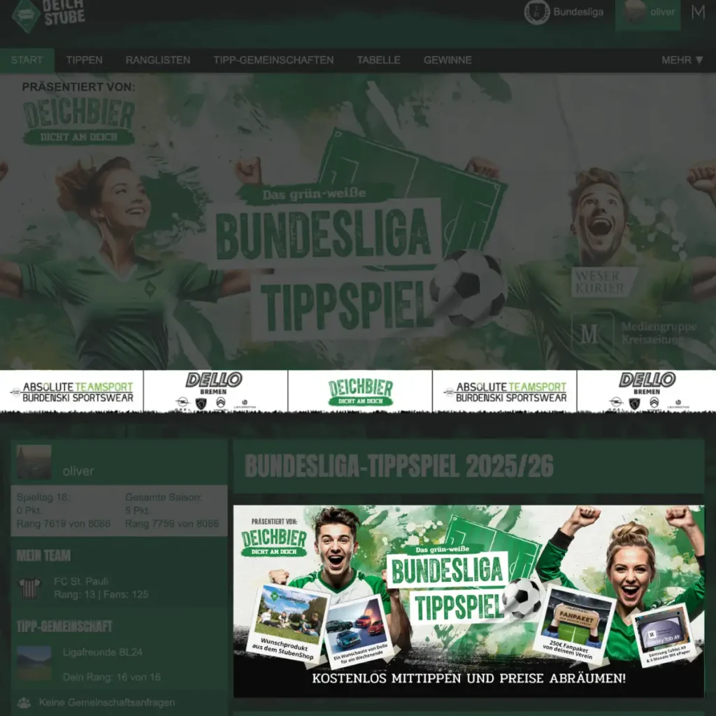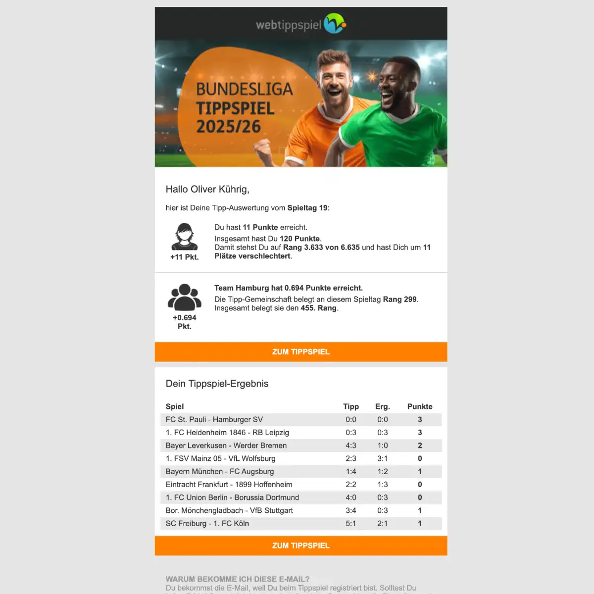 We adapt the entire prediction game to your brand guidelines. Logos, colours, spacing, typography and user interface elements are aligned precisely with your corporate identity.