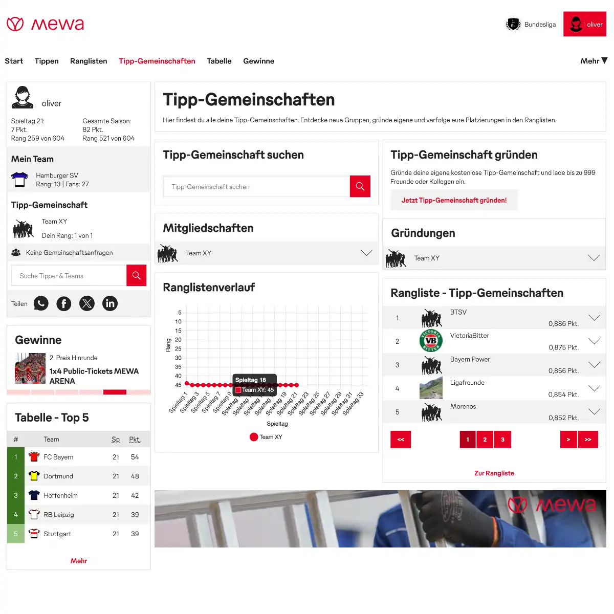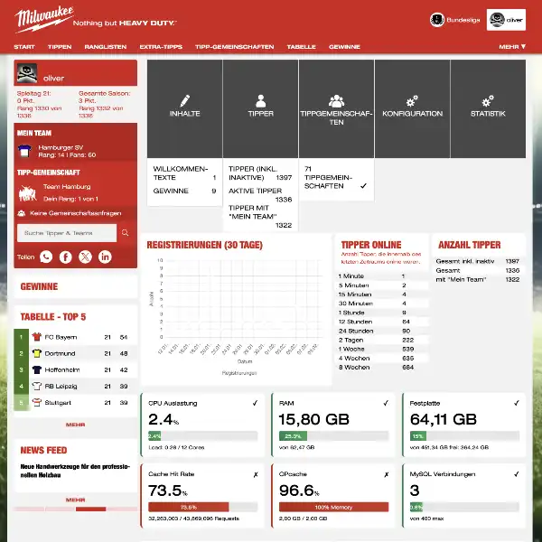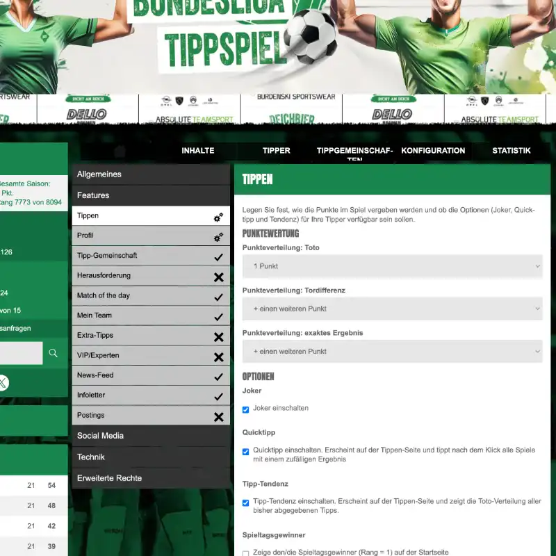 Manage your entire prediction game from a central admin area. Adjust settings, create content, manage participants or add custom extensions — everything is prepared for company-level requirements.