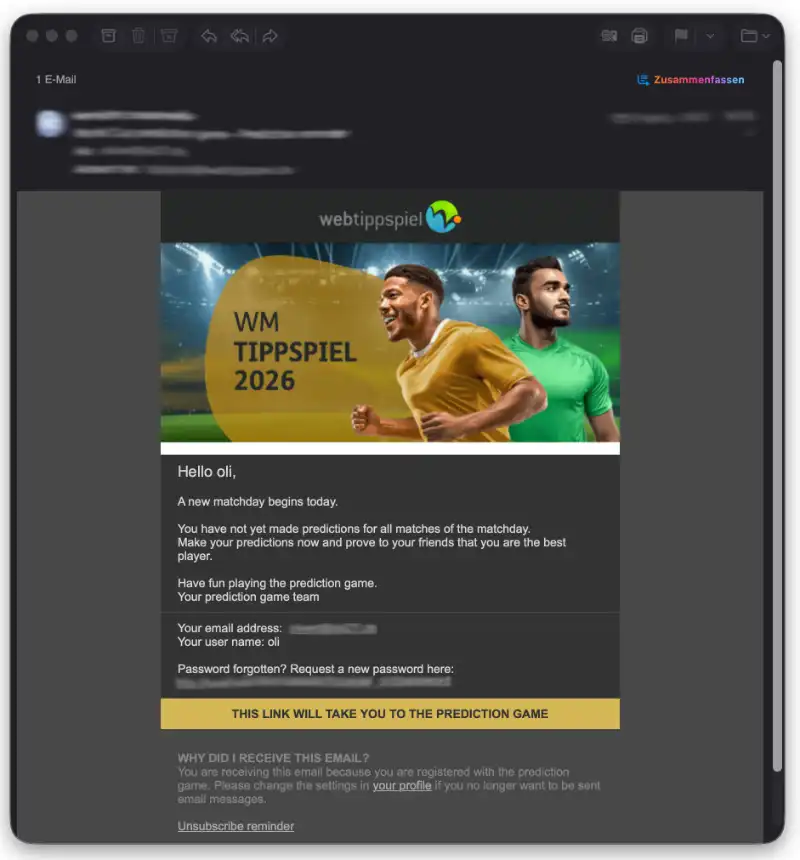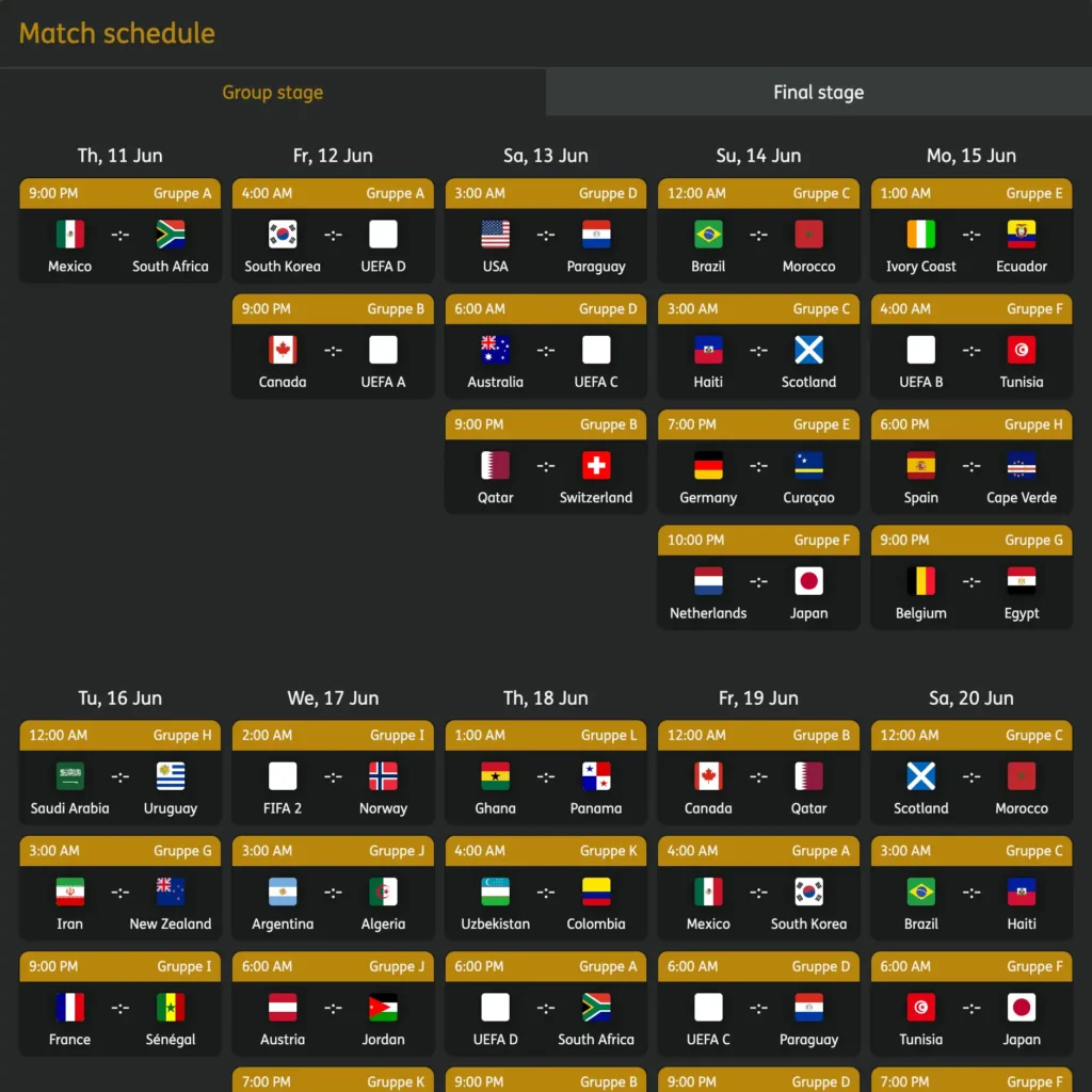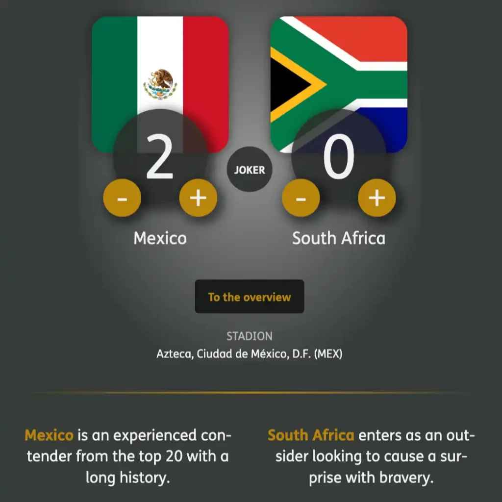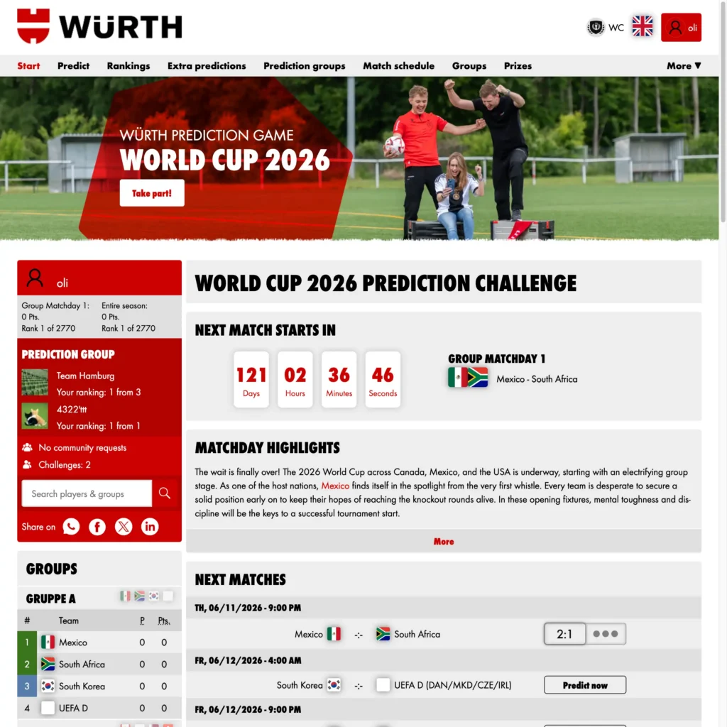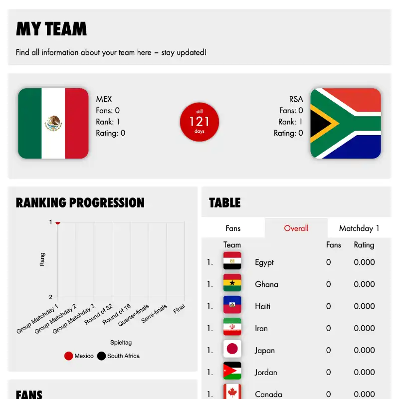 Whether simple predictions or strategic decisions: the game system is designed to maximise excitement. Bonus points, statistics, match information and structured schedules keep participants active throughout the tournament.
